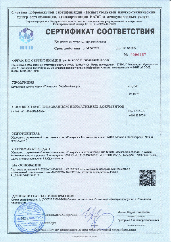 Гранулят из синтетического каучука. Входит в состав бесшовных покрытий на детских и спортивных площадках. Безопасный для здоровья человека материал. Сохраняет яркость цвета на протяжении всего срока эксплуатации — не менее 10—15 лет.